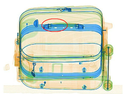 由上圖(tú)可見,在(zài)第二視角中被行李箱骨架(把手處(chù),紅色橢圓(yuán)內)遮(zhē)擋的水果刀,可以在(zài)二視角中看到。