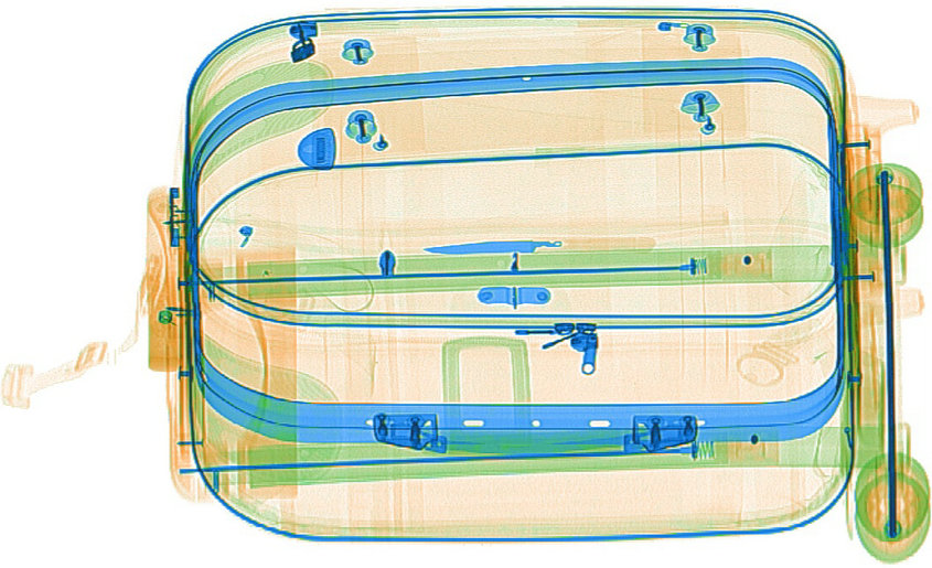 九一网页版免费(雙源雙視(shì)角(jiǎo)安(ān)檢機)能夠綜合二(èr)個視角(jiǎo)的信息,從而(ér)有效發現遮擋物後的可疑有機物(可疑液(yè)體、爆炸(zhà)物等),並以不同的顏色框出。相關實物過機圖如下: